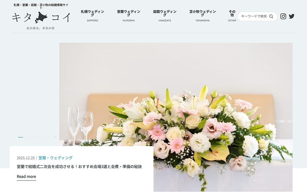 北海道の花嫁様・プレ花嫁様へ向けたウェディング情報を発信するオウンドメディアサイト。記事の更新をCMSで管理できるよう構築。